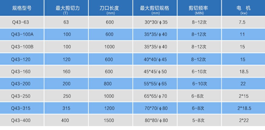 鱷魚剪也叫做鱷魚剪切機適用于金屬回收加工廠、報廢汽車拆解場、冶煉鑄造行業,廢鋼廠等,可將各種形狀的型鋼及各種金屬材料進行冷態剪斷,該機刀口長度分別:400mm、600mm、700mm、800mm、1000mm、1200mm,剪切力從63噸到400噸八個等級,適合不同規模不同要求用戶。該機采用液壓驅動、使用方便、維修簡單。